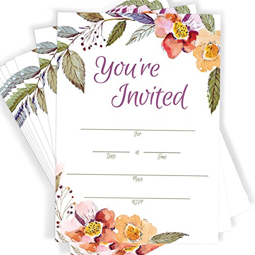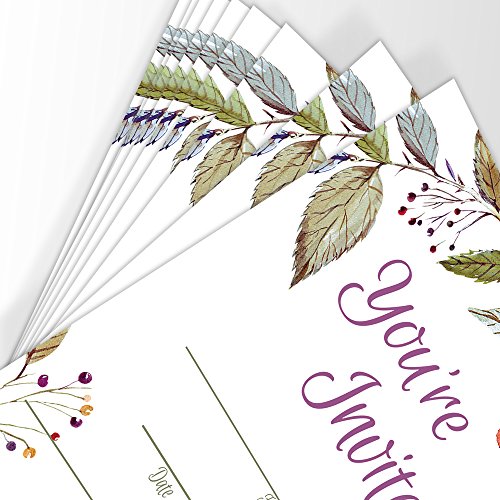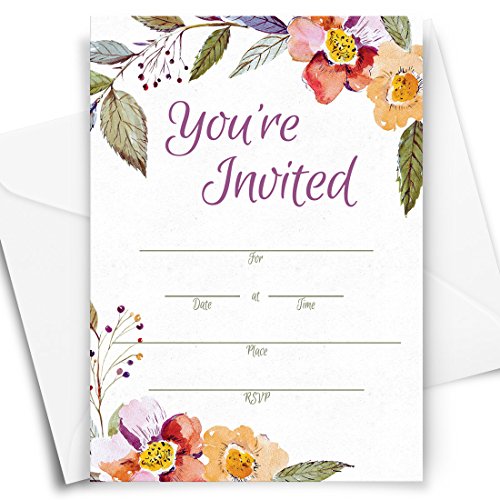 Floral Party Invitations | All Occasion | 25 Invitations with Envelopes | Bridal Shower | Baby Shower | Rehearsal Dinner | Birthday | Anniversary