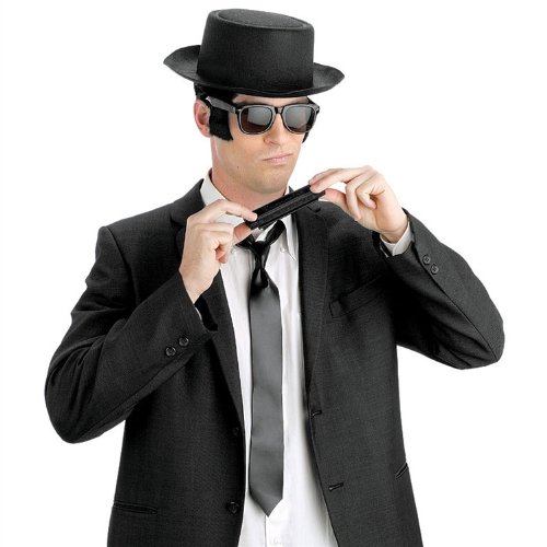 -. Brand : Fun World -. Color : Multi -. Department : mens -. Feature : Tie: Polyester. / Includes: Porkpie Hat, Harmonica, Tie, and Sun Glasses with Sideburns -. Label : Fun World -. Manufacturer : Fun World -. PackageQuantity : 1 -. ProductGroup : Apparel -. ProductTypeName : ADULT_COSTUME -. Publisher : Fun World -. Studio : Fun World -. Title : Fun World Men's Blues Brothers Accessory Kit (Adult)