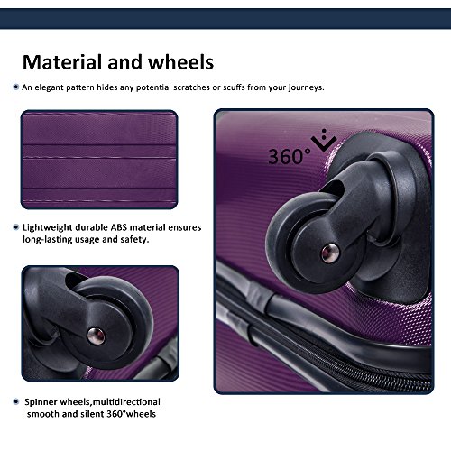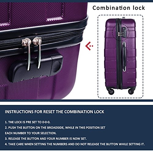 Features **Designed to provide travelers comfort, functionality, reliability, and peace of mind, we provided this 28 inch suitcase suitable for consignment. **Light Weight ABS material : Lightweight durable ABS hardshell material ensures long-lasting usage and safety. **Spinner wheelTelescoping handle: Quiet airplane spinner wheel system and an adjustable 3-step telescoping handle system allow you to maneuver in tight spaces and provide effortless movement. **PatternLock: An elegant pattern hides any potential scratches or scuffs from your journeys while with the 3-digit combination lock you secure the contents from thieves.