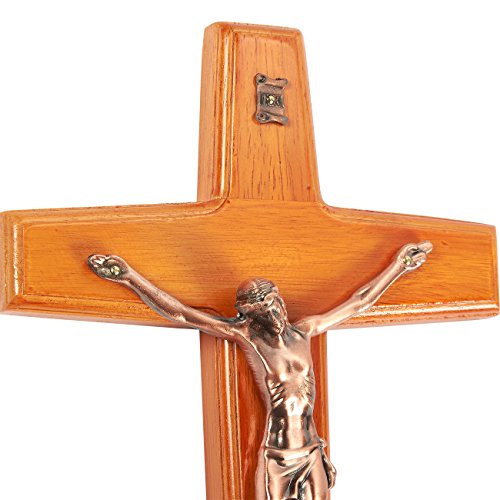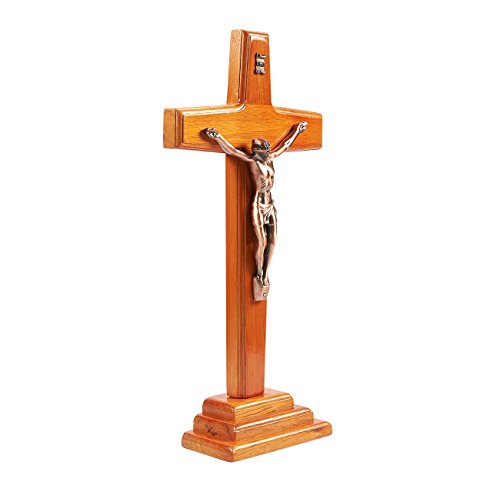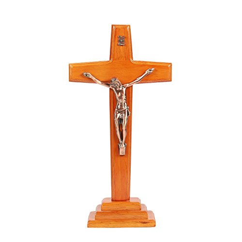 Jesus Cross Crucifix Figurine - Religious Wooden Figure of Christ's Crucifixion, Catholic Holy Cross Decoration - 7 x 13.5 x 2.5 Inches