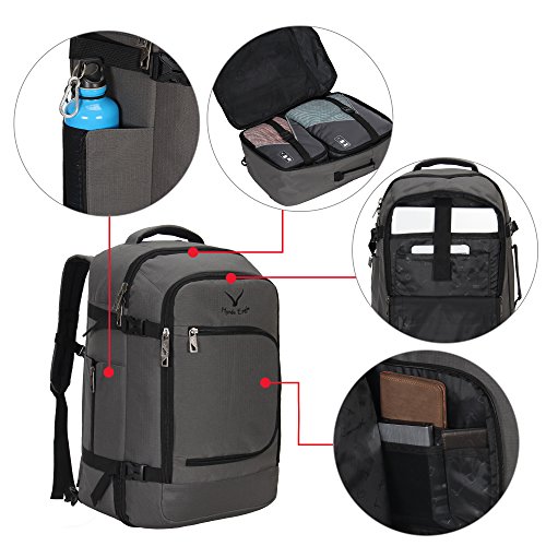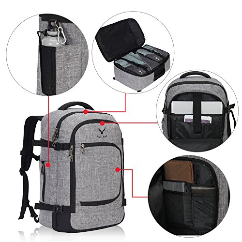 Hynes Eagle Travel Backpack 40L Flight Approved Carry on Backpack, Grey with 3PCS Packing Cubes
