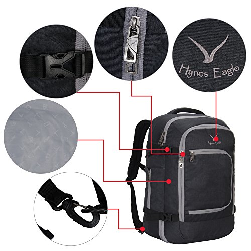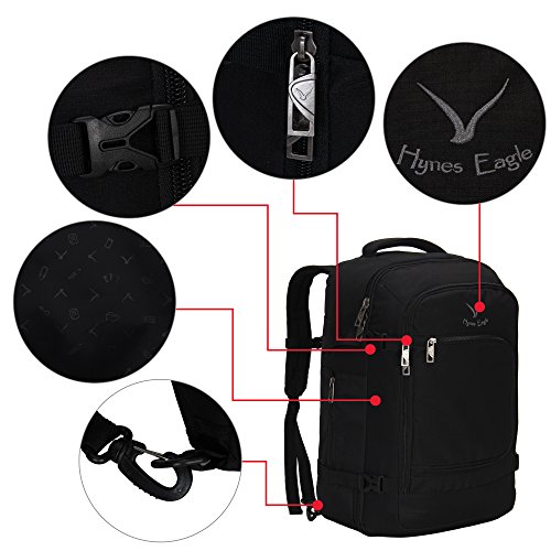 Hynes Eagle 40L Flight Approved Carry on Backpack (Black-N)