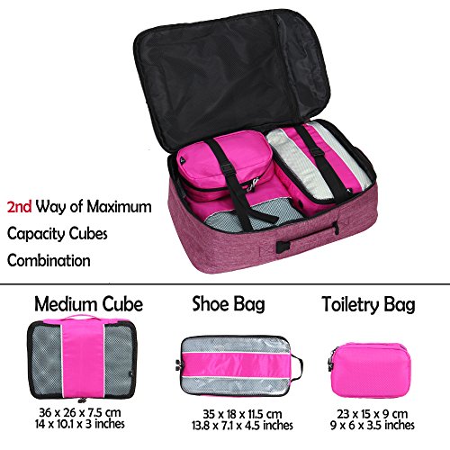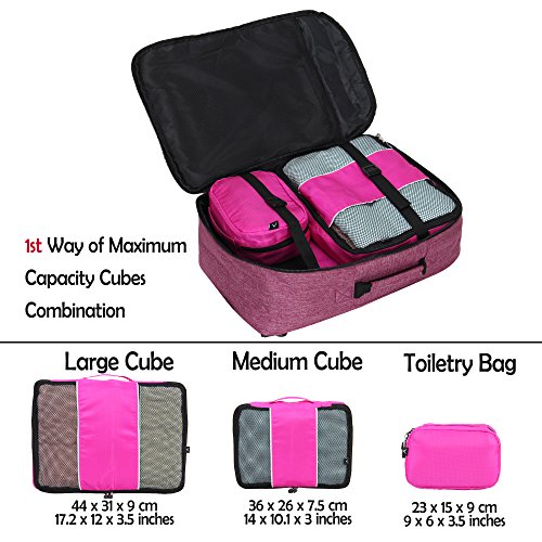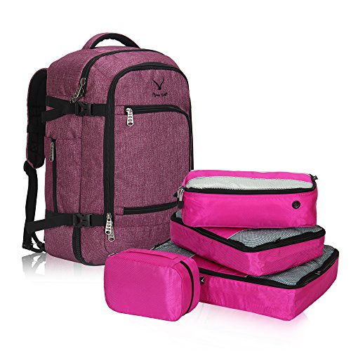 Hynes Eagle Travel Backpack 40L Flight Approved Carry on Backpack, RedViolet with 4PCS Packing Cubes
