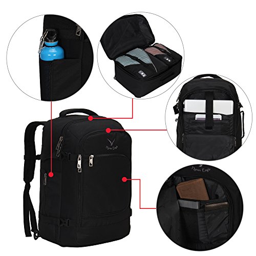 Hynes Eagle Travel Backpack 40L Flight Approved Carry on Backpack, Black with 3PCS Packing Cubes