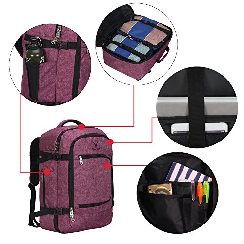 Hynes Eagle 40L Flight Approved Carry on Backpack (Red Violet)