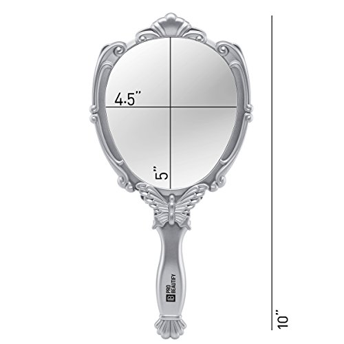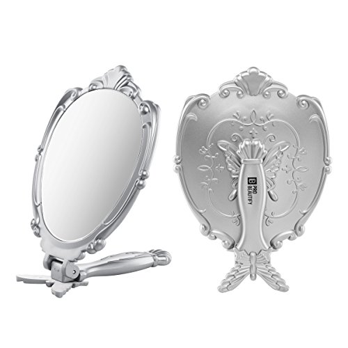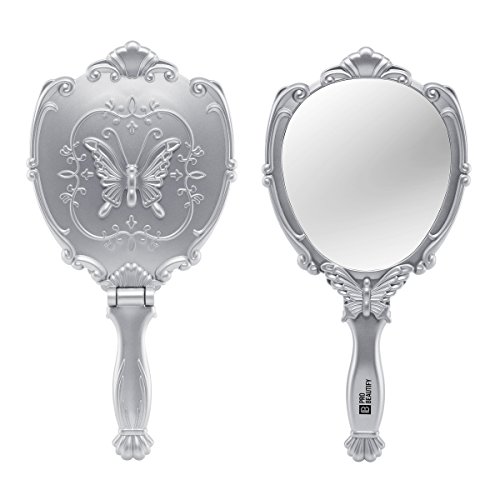 Decorative Handheld Compact Mirror- Embossed Butterfly Design- Folding Handle- Lightweight & Portable- 180 Degrees Full Folding- Premium Quality- Ideal For Your Makeup Routine- Travel Mirror (Silver)