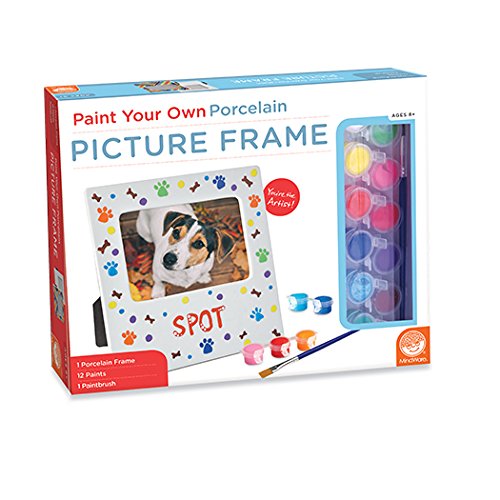 Studio : MindWare Publisher : MindWare Binding : Toy Product Description Do you know someone with a creative frame of mind? Channel their artistic talents with this premium frame painting kit from MindWare. The porcelain frame holds a 4" x 6" photo with two-way easel for vertical or horizontal display. A full-color instruction guide teaches tips on color mixing plus design effects like stippled, taped-off and sponged designs. Simply paint your own design for a glossy, picture-perfect finished frame! It's a simple craft that captures special memories. 0