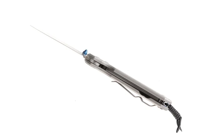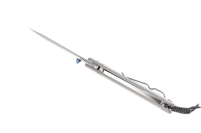 상품 내용 전체 길이: 175 미리메터 블레이드 길이: 70 미리메터 폐쇄 길이: 95 미리메터 블레이드 두께: 3.1 미리메터 블레이드 마무리: Stonewashed 블레이드 재질:D2 핸들 재질: 티타늄 합금 핸들 처리: 발파 경도: 58-60 HRC 무게: 75 그램 포장 상세