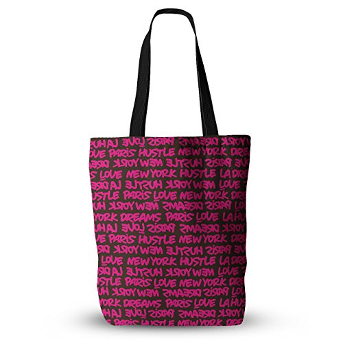 KESS InHouse Just L "Lux Writing Pink Brn" Typography Urban Everything Tote Bag, 18" x 18", Multicolor
