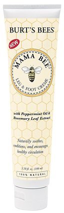 -. Feature : Mama Bee Leg Foot by Burt's Bees 3.38 oz Creme WHY IT WORKS Peppermint Oil relaxes soothes and conditions while Rosemary Leaf extract encourages healthy circulation bringing relief to sore tired and stressed legs and feet. HOW IT WORKS Gently massage