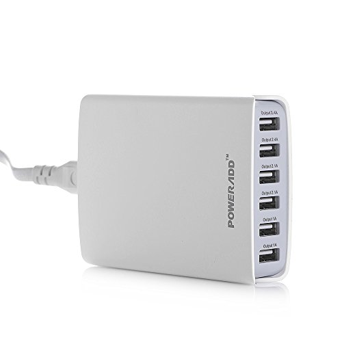 Poweradd 50W 6-Port Family-Sized Multi-Port USB Desktop Charger for iPhone 6S Plus / 6 Plus / 5S / 5C, iPad, iPod, Samsung Tab S / A, Galaxy S6 Edge / Note 5 4, Smartphones, Tablets and Other Devices