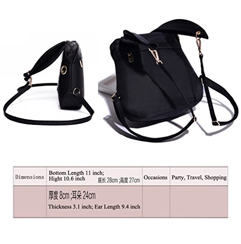 -. Feature : Dimensions: Bottom Length-11 inch(28cm), Thickness-3.1 inch(8cm), Hight-10.6 inch(27cm), Ear Length-9.4 inch(24cm) / High Quality Nylon Fabric: durable, solid color and cool style; Vivid Big Rabbit Pattern / LARGE CAPACITY: 2 pouches and 1 compartment, your Ipad, laptop, books, umbrella etc. can be filled in / Zipper Closure and Premium Terylene Lining; Attractive and perfect for college, school, travel and outdoor activities / Adjustable shoulder strap; Unique Design, Simple but Graceful
