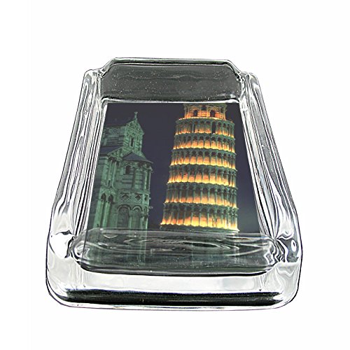 -. Title : Famous Landmark Leaning Tower of Pisa Italy S8 Glass Square Ashtray 4"x3" Sturdy Cigarette Smoking Bar