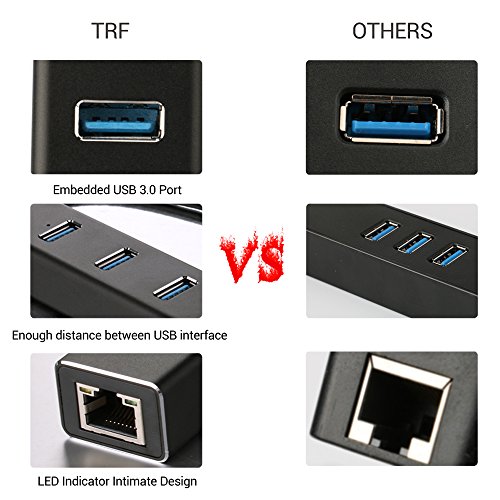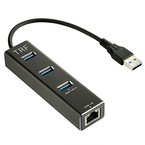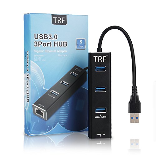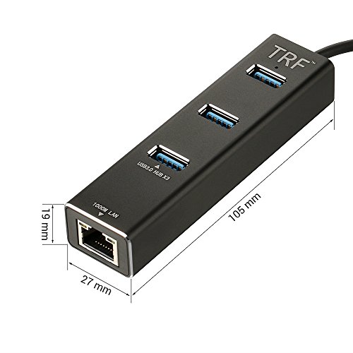 TRF Aluminum USB 3.0 Hub and RJ45 Gigabit Ethernet Lan Adapter Wired Network Converter Supports Hot Plug (Black)