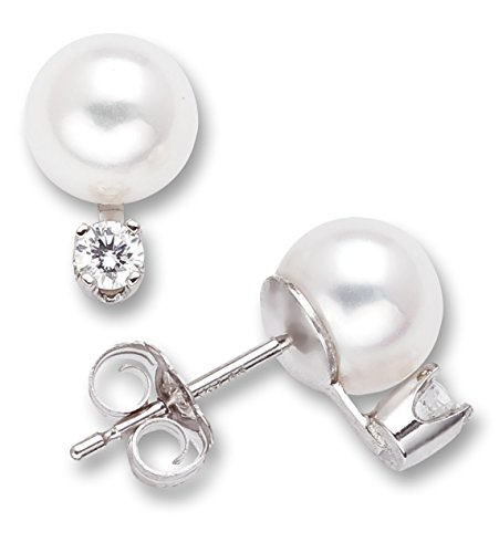 -. Title : 14k White Gold 6.5-7mm Cultured Pearl and Diamond Stud Earrings