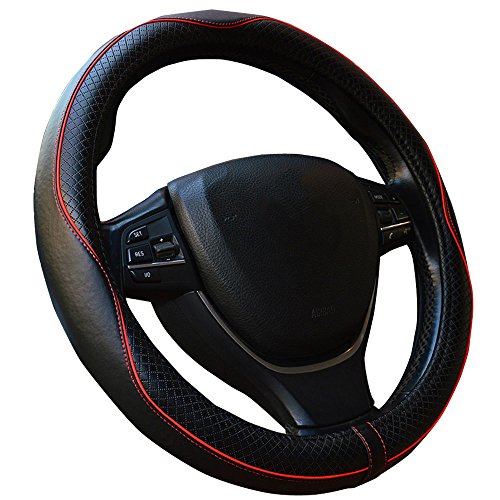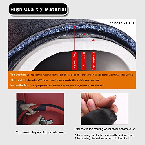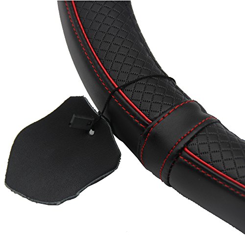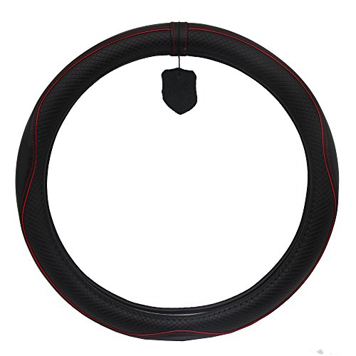 Check the size of you steering wheel cover before buying it ! Inclueds: 1 Pcs Top Leather Steering Wheel Cover(15 Inch ,38cm) Specifiction: Material :Top Leather Inner Material: Natural Rubber Color :Black With Red Line Outer Diameter: 38cm Porotecting the Original or Replacing for a Damaged or Worn Leather Steering Wheels Covers Just change the style of you steering wheel covers for comfortable driving.Feature