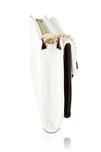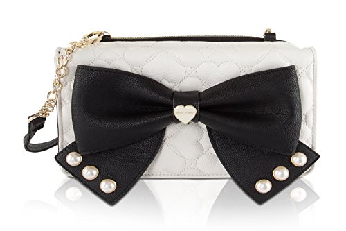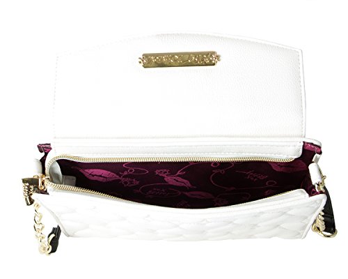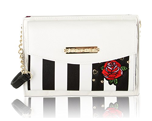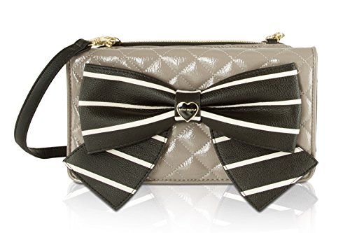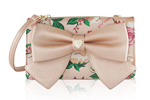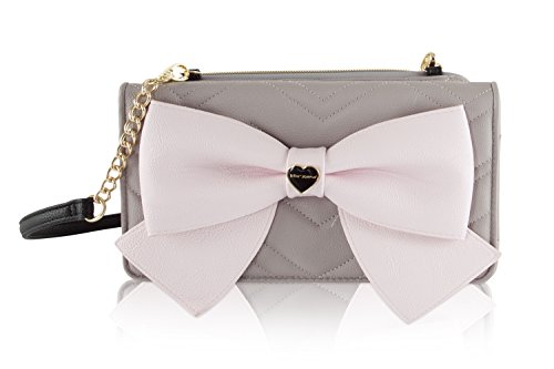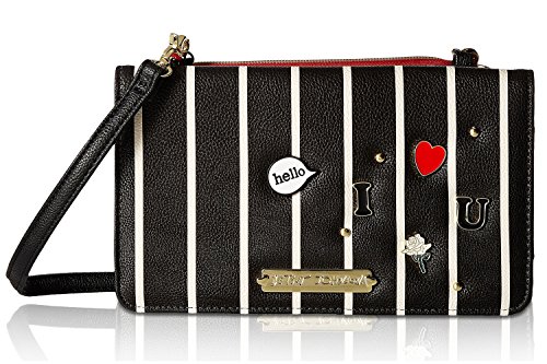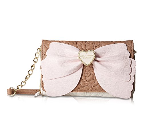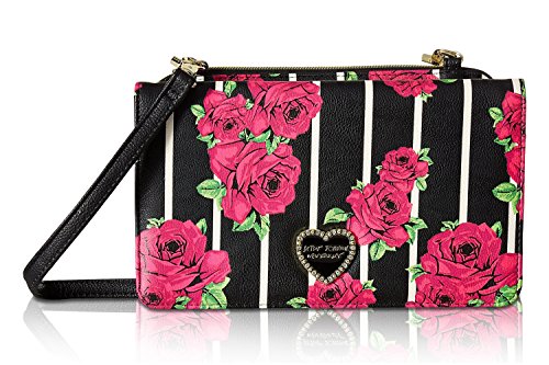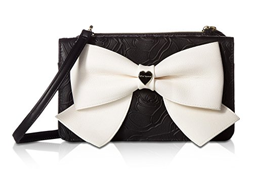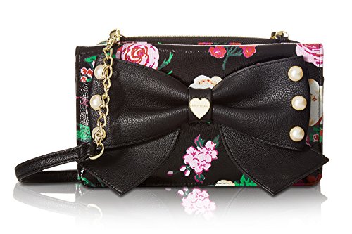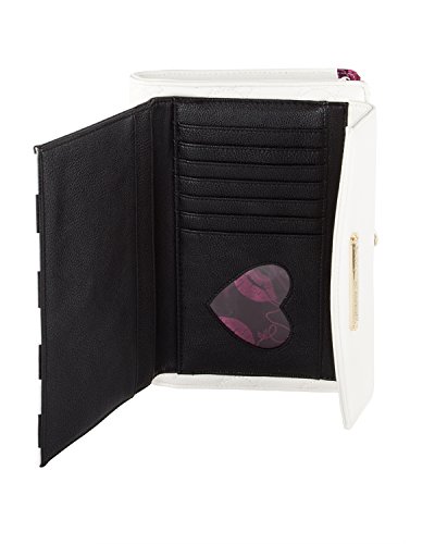 For the perfect blend of fashion and function, get the stylish Betsey Johnson wallet on string. Its constructed of all soft faux leather exterior, featuring Top zipper open pocket with wall zip and 2 slip pockets, snap front flap pocket with 2 bill, 6 credit card and hear ID detail, Chain Detail cross-body strap offers security while wearing.