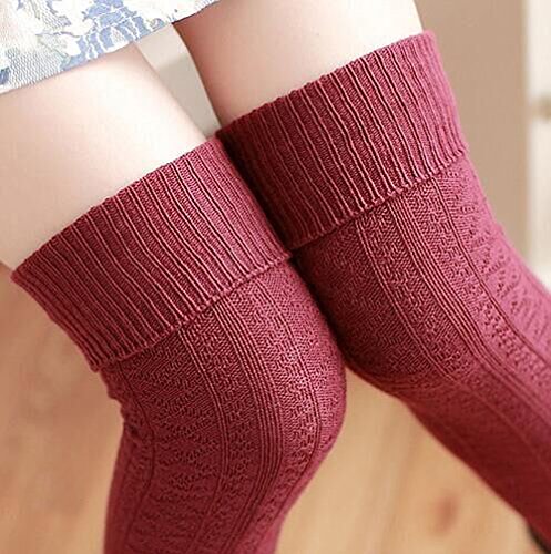 Women Soft Elegant Cotton Knitted Over Knee High Long Stocking Leg Warmers Crochet Boot Socks Leggings