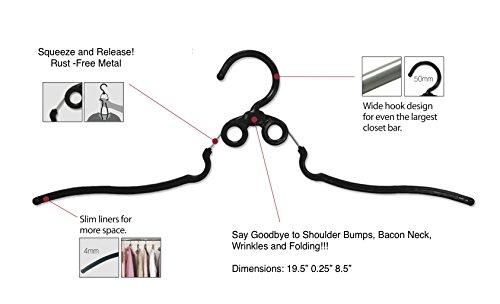 -. Feature : Thin design to maximize closet space (10 PACK) / Preserve your favorite/expensive shirt collars with a simple squeeze and release. / Long length and spring action evenly distributes weight, eliminating awkward shoulder bumps. / No more FOLDING! Hang your shirts right out of the dryer. / Laundry day just got easier!