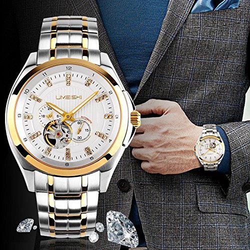 -. Title : SKMEI Mens A003 Luxury Business Stainless Steel Gold Toned Watch