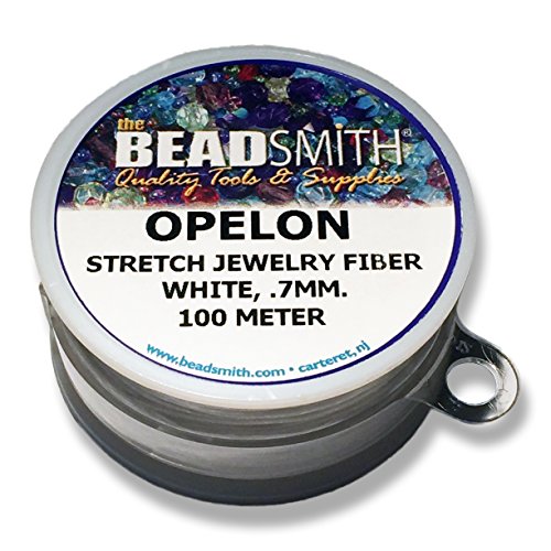Opelon Stretch Cord can be threaded through a needle, allowing you to make large quantities of stretchy bracelets and anklets quickly and easily. Will not lose its elasticity over time. Cord can be knotted without damage. Not suitable for very heavy beads, or beads with sharp edges, as these over time could fray the cord. Finish your bracelet or anklet with a not as opposed to a crimp.Feature