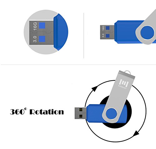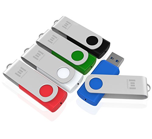 5 X mosDART 16GB USB3.0 Flash Drive High Speed Swivel Bulk Thumb Drives Fast Transfer,Black/Blue/Red/White/Green,5Pack