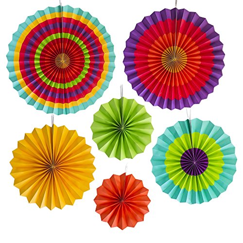 YOBAYE Fiesta Disc Southwestern Pattern Round Wheel Paper Fans for Birthday ,Wedding Party Decorations,Event, Home Decoration, 8,12,16 inch,6 Pieces/Pack