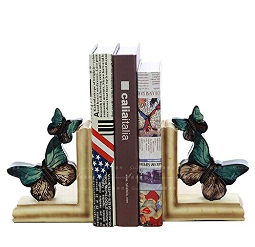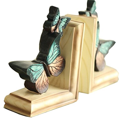 Elegant Antique Resin Ice Blue Butterfly Bookshelf Bookends For Home Office Decoration E21-161017