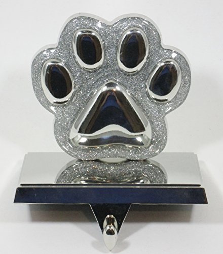 St. Nicholas Square Silver Glitter Paw Print Christmas Stocking Holder