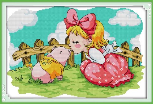 Happy Forever Cross Stitch, Cartoon animal, kiss pig girl