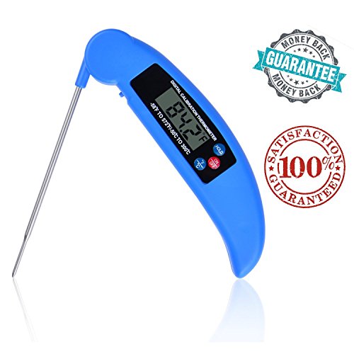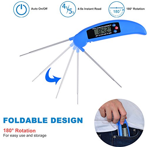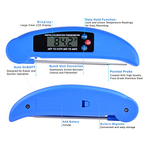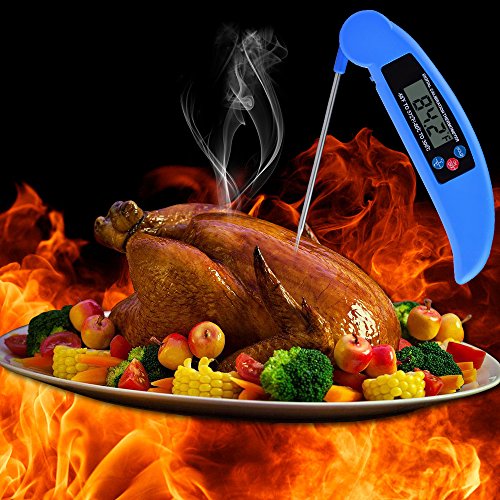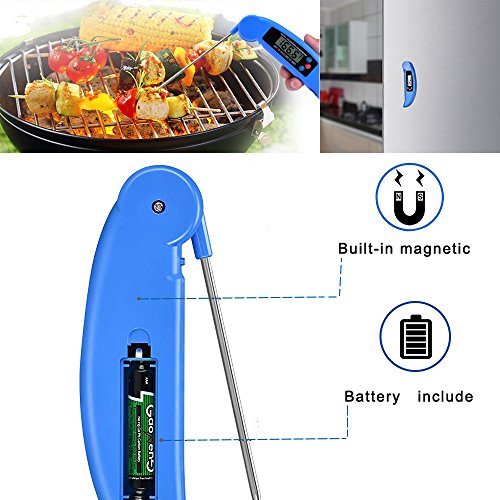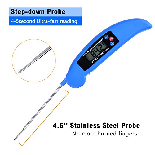 Digital Food Cooking Thermometer-Instant Read UPGRADED MODEL Food-Safe Stainless Collapsible Probe for Meat Gill Smoker BBQ(Blue)