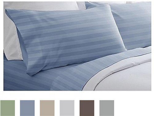 Spirit Linen Hotel 5Th Ave 400 Thread Count Dobby Stripe Sheet Set, Queen, Light Blue