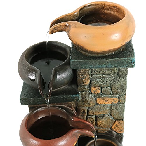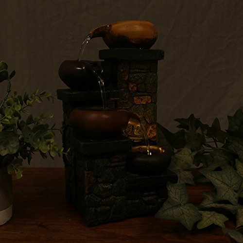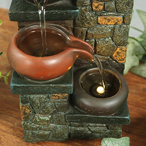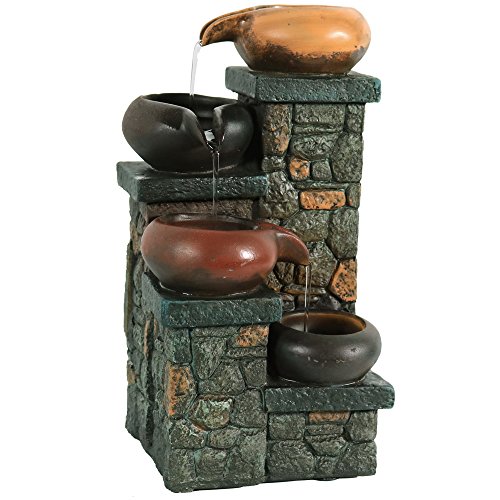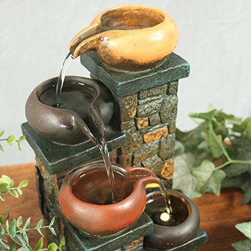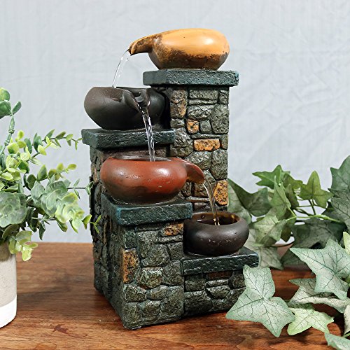 Sunnydaze Tiered Pitchers on Brick Steps Tabletop Water Fountain with LED Light, 10 Inch