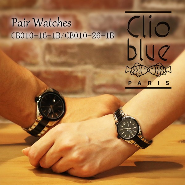 クリオブルー Clio Blue ペアウォッチ クオーツ メンズ レディース 時計 ウォッチ ブラック フランス パリブランド ファッション お揃い 釣り好き 魚 ペアセット プレゼント