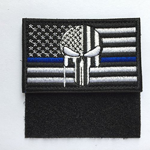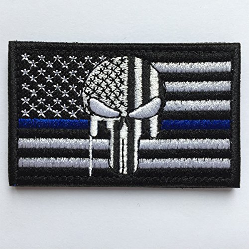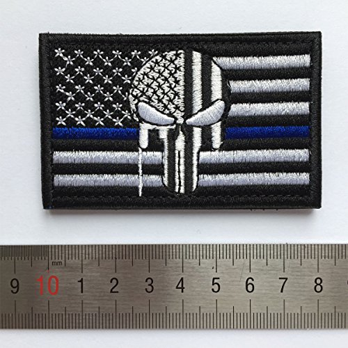 SpaceAuto USA American Flag Skull Military Army Tactical Morale Badge Hook & Loop Decorative Patch 3.15" x 1.97" - Thin Blue Line White