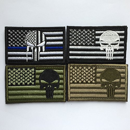- USA American Flag w/ Judge Punisher Skull Military Army Tactical Morale Badge Hook & Loop Decorative Patches