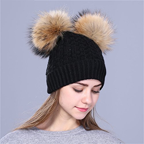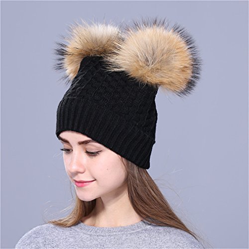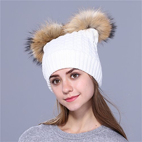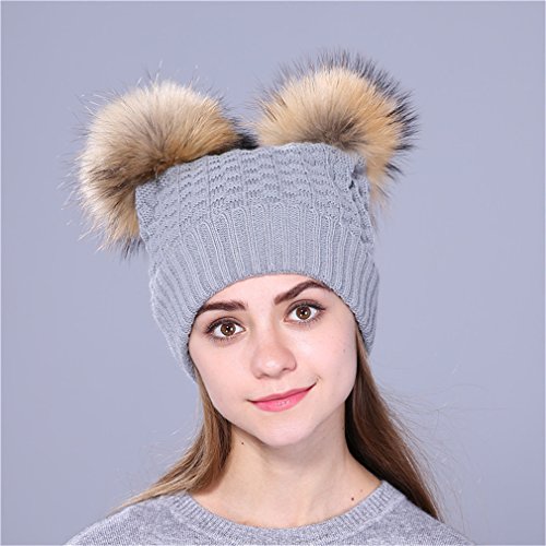 | (Yastyen)/Accessories/Cold Weather Accessories/DIRECT FROM USA/Winter Hat Women Knitting Beanies Natural Fur Double Pom Poms Skullies Girls Hat Feminino Cap |