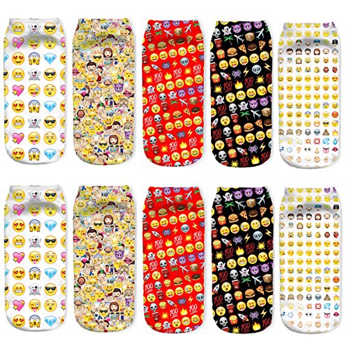 5 Pairs Emoji Socks Girls Teens 3D Printed Socks Pattern Low Cut Gift Socks