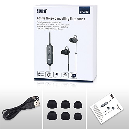 -. Binding : Electronics -. Brand : August -. EAN : 5053047004994 -. Feature : Active Noise Cancelling Earphones - Flick the switch to tune out low frequency background noise / Hands-free Calling with Integrated Microphone - Take your calls without taking your phone out / Built-in Rechargeable Battery - Up to 13 Hours Battery Life / Controls at your fingertips - Answer Calls & Control your Music from the in-line Remote / Lose Yourself in your Favourite Music - Great Sound Quality without Background Noises -. IsAutographed : 0 -. IsMemorabilia : 0 -. Label : August -. Manufacturer : August -. Model : EP720 -. MPN : EP720 -. PartNumber : EP720 -. ProductGroup : Speakers -. ProductTypeName : HEADPHONES -. Publisher : August -. Studio : August -. Title : Noise Cancelling Earphones - August EP720 - Active Noise Cancelling Earbuds - ANC In Ear Headphones with Integrated Microphone