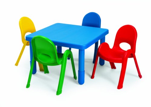 - 28W x28L x 20H Royal Blue Table with one each 11" Chairs in Royal Blue, Candy Apple Red, Shamrock Green and Canary Yellow