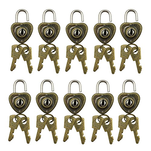 Mmei Pack of 10 Old Vintage Antique Style Heart Shaped Mini Padlocks Key Lock for Jewelry Findings Arts Crafts Sewing