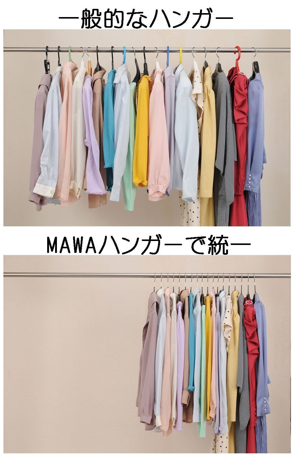Soft materials and slim blouses can also be stored without shoulder coming out. Since it is a gentle curve, it is difficult to break the shoulders of clothes, and it is convenient for storing cardigans, cut-saws, ensembles, etc.