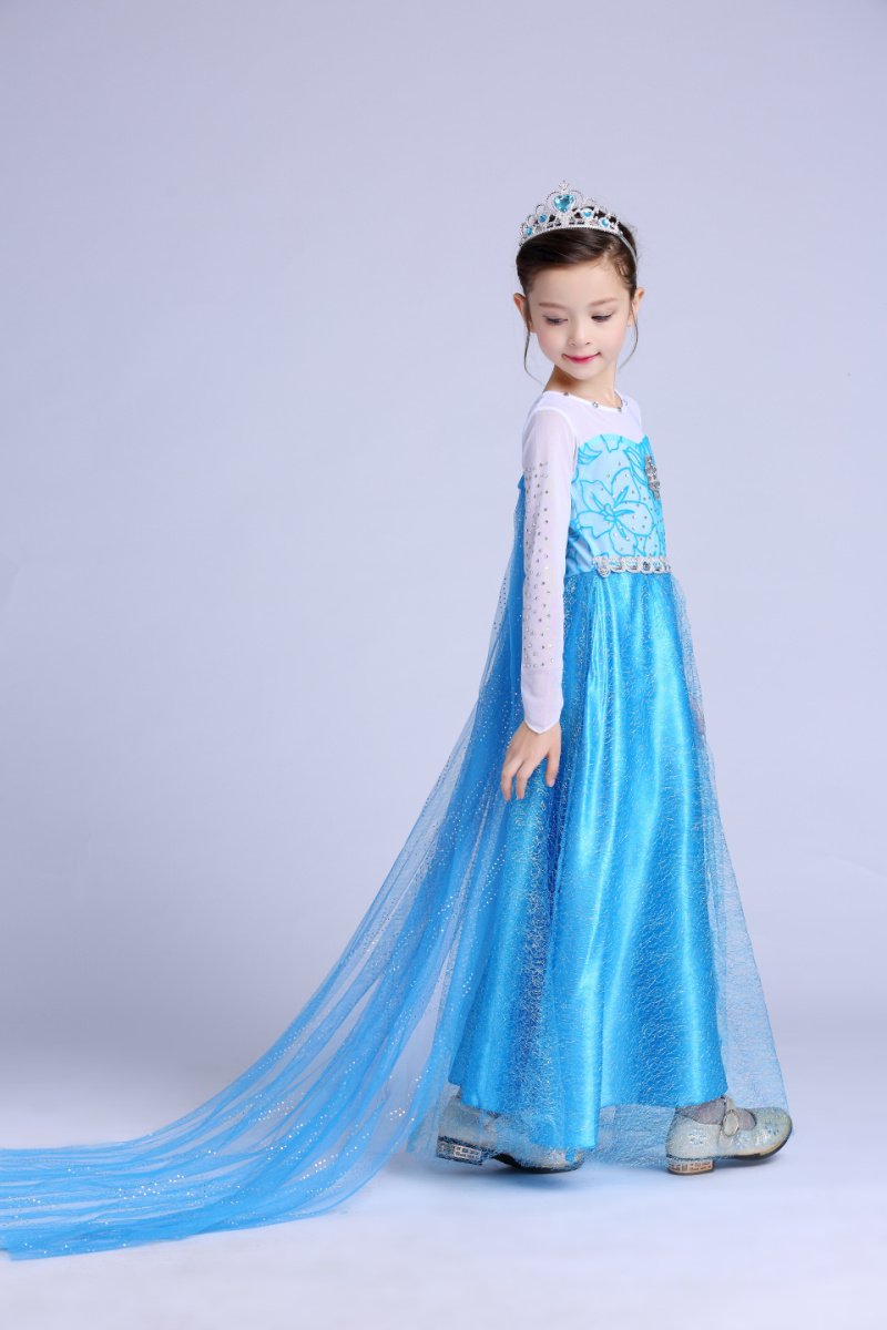 The detachable cape studded with rhinestones draws a flowing line and the mood is already Elsa itself.