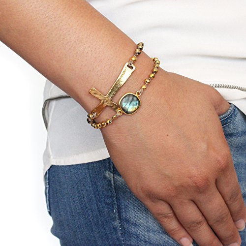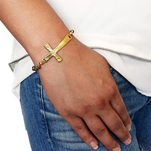 -. Binding : Jewelry -. Brand : ISABEL INY -. Department : womens -. Feature : This bracelet is made of champagne color coated hematite beads and pewter antique hammered cross. / Clasp is gold plated. Great piece for layering. / Bracelet is about 7.25" / All Isabel Iny pieces are handmade in the USA. -. Label : ISABEL INY -. Manufacturer : ISABEL INY -. ProductGroup : Jewelry -. ProductTypeName : FASHIONNECKLACEBRACELETANKLET -. Publisher : ISABEL INY -. Studio : ISABEL INY -. Title : ISABEL INY Abba Women Bracelet Hematite Beads, Antique Hammered Cross, Plated Clasp - Handmade