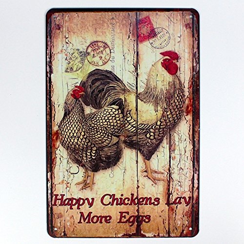 Mega-Deal Happy Chickens Lay More Eggs, Rooster Metal Tin Sign, Wall Ornament Coffee & Bar Decor 8" X 12"