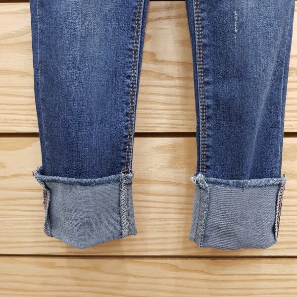 다크인디고톤의 워싱의 턴업된스타일로 깔끔한 코디를하시기에 좋은데님팬츠입니다.