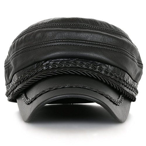 -. Binding : Apparel -. Brand : ililily -. Department : mens -. Feature : Medium Size 7 1/8 / 100% Genuine leather scrunched, military cap / Braided detail around front crown / Quality material / Available in 3 sizes -. ProductGroup : Apparel -. ProductTypeName : HAT -. Title : ililily Black Genuine Leather Braided Detail Military Flex Fit Flat Top Cap