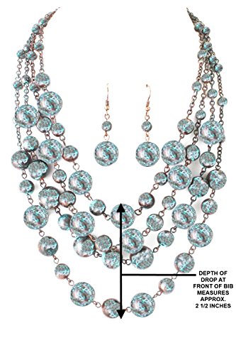 -. Binding : Jewelry -. Brand : Lucky You -. Department : womens -. Feature : 16 inch four strand mottled patina green teal bead layered bib necklace on patina-finish chain with copper-tone findings. / An additional 2 inches of wearable length is available via extender chain. Closes with a lobster clasp. / Depth of drop on the bib portion of the necklace measures approximately 2 1/2 inches when on. / Matching dangle drop earrings measure 1 3/4 inches in length as measured from the top of the ear wire. -. Label : Unknown -. Manufacturer : Unknown -. Model : SC5632OG -. MPN : SC5632OG -. PartNumber : SC5632OG -. ProductGroup : Jewelry -. ProductTypeName : FASHIONNECKLACEBRACELETANKLET -. Publisher : Unknown -. Studio : Unknown -. Title : Mottled Patina Teal Green Finish Bead & Copper-Tone Multistrand Layered Necklace 16” w/ Dangle Earrings