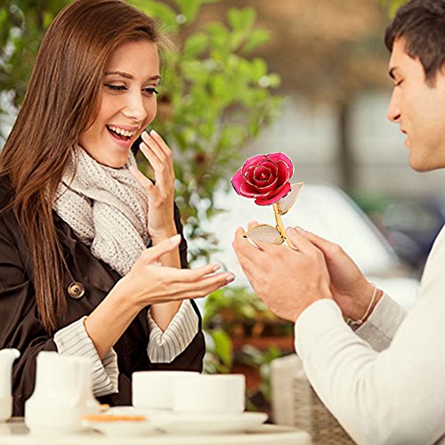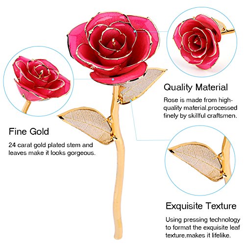 Features of this forever rose: Real rose petals, stems and leaves has been picked freshly, dried, preserved, and painted, finally plated with gold to last forever! This is a rose that never die, which express your forever love to her.