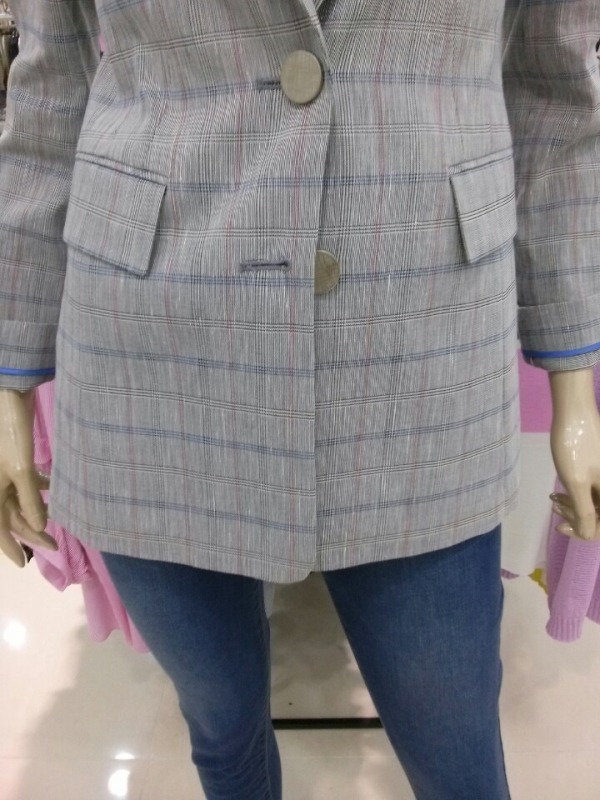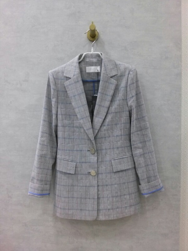 얇은 소재의 정갈하게 떨어지는 핏으로 군더더기 없는 깔끔한 디자인의 체크무늬 싱글자켓이에요^^